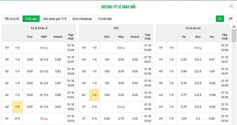 Kèo nhà cái thường thay đổi sau mỗi tình huống trên sân. Càng cập nhật nhanh, bạn càng có lợi thế khi chọn: