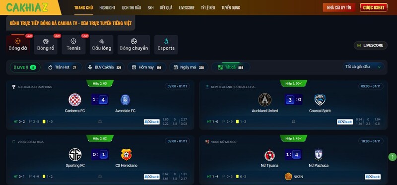 - Giao diện dễ làm quen: Thiết kế của Ca Khia TV thường tập trung vào tính trực quan. Lịch thi đấu, bảng xếp hạng, kết quả, livesore, tỷ lệ kèo, highlight được đặt ngay trang chủ, chia theo ngày và giải đấu. Người dùng mới không mất nhiều thời gian để hiểu cách dùng.