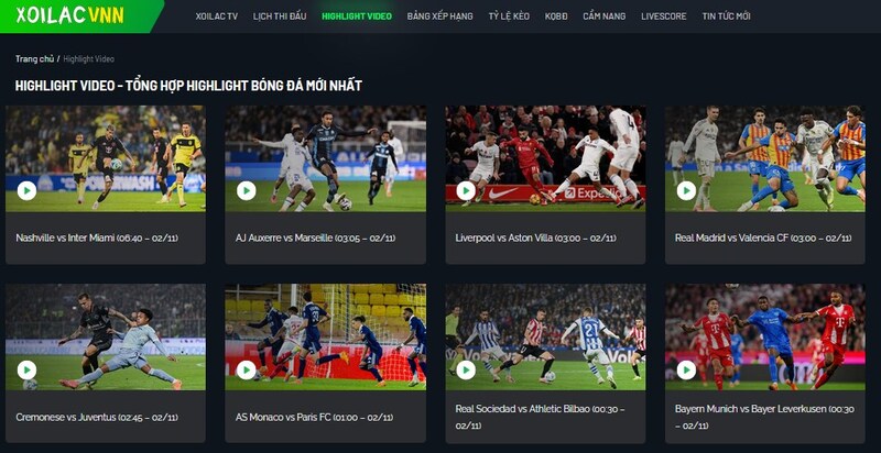 Highlight trên Xoilacvn đầy đủ và chất lượng cao